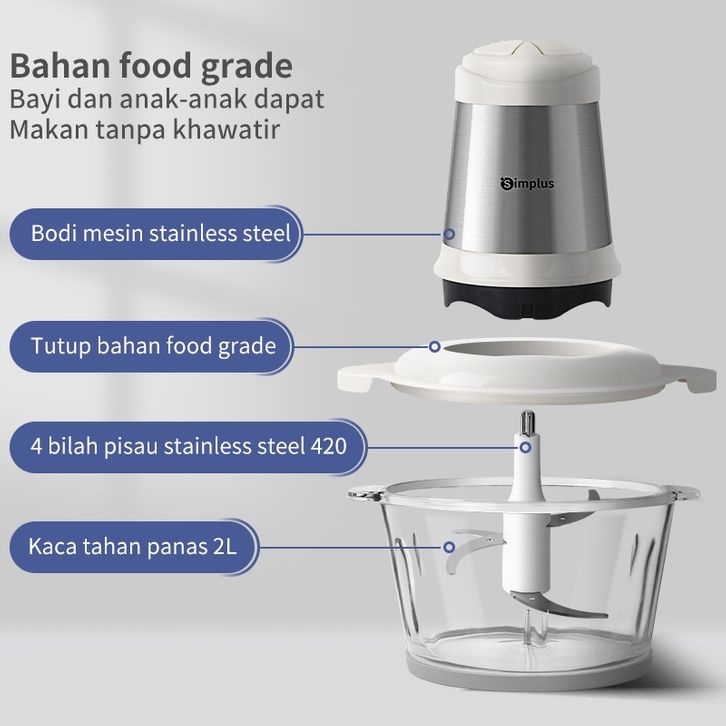 Simplus Chopper Blender 2L Penggiling Daging Bumbu Cabai Serbaguna 300W Simplus Bergaransi 1 tahun