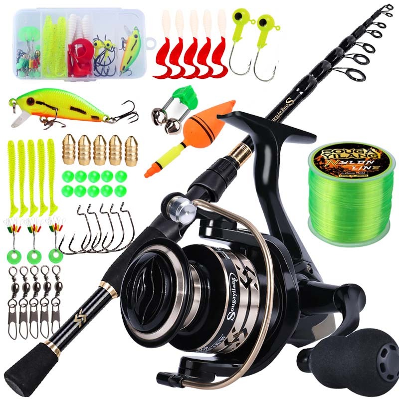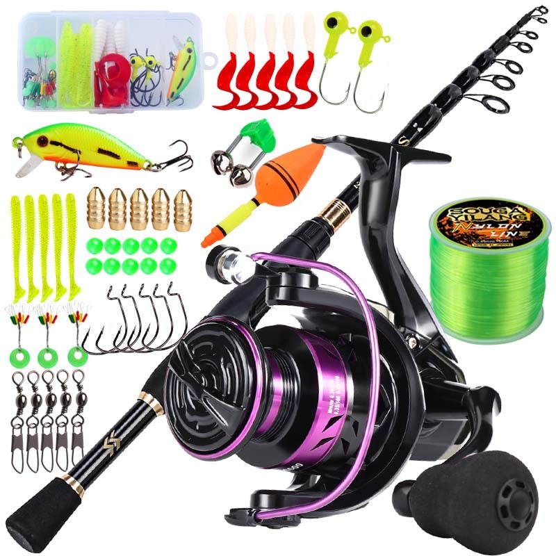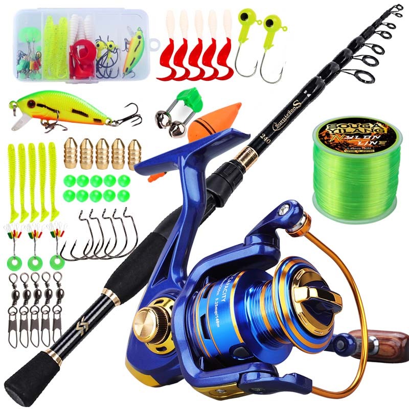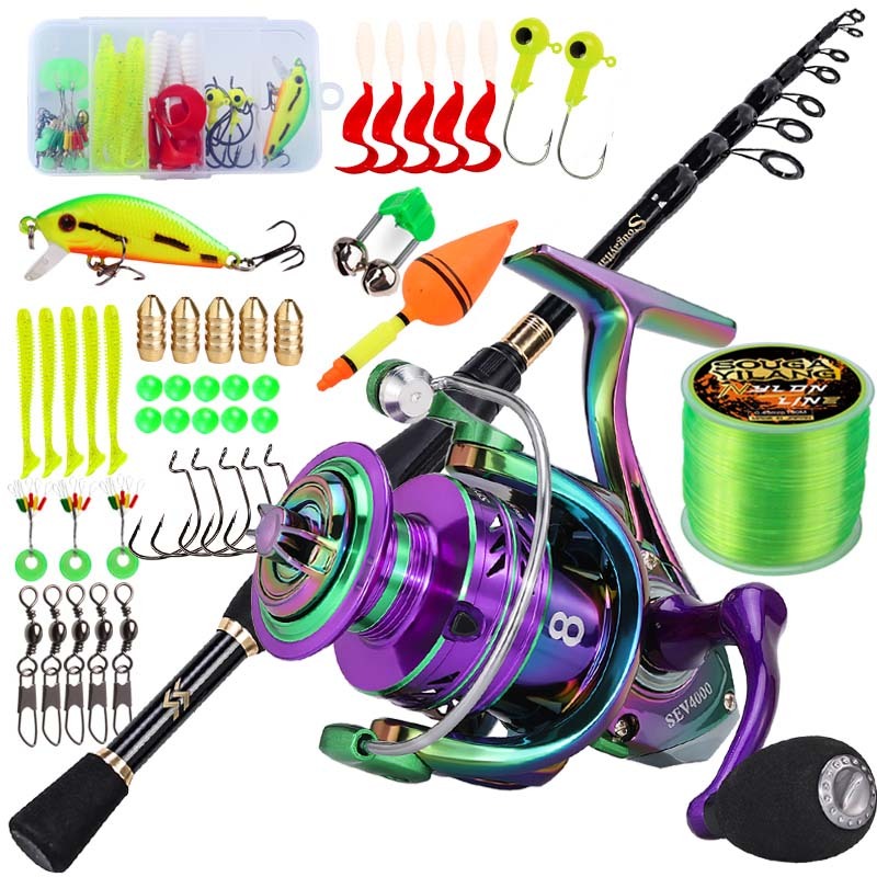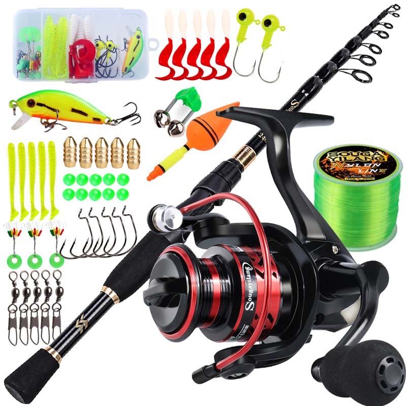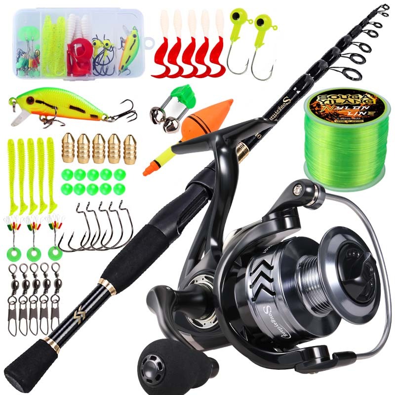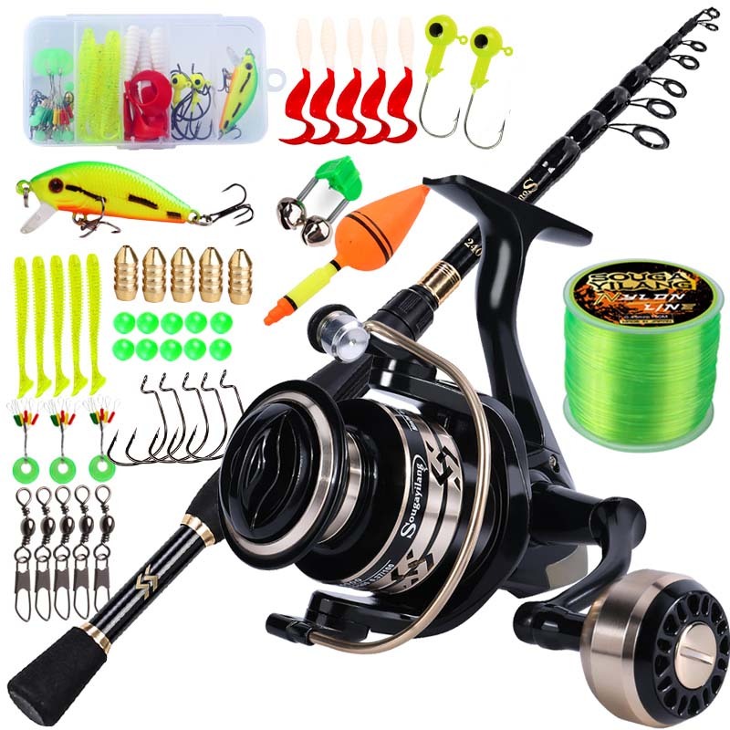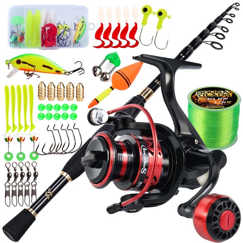 Full Set Telescopic Fishing Rod Carbon Fiber 1.8/2.4m and Spinning Fishing Reel 5.2:1 Ratio Gear with Line Lure Accessor