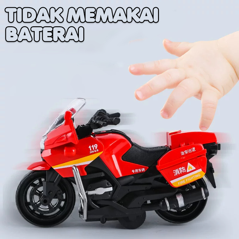 Mainan Die Cast Motor Tarik Polisi Pemadam Anak Laki-laki Warna Warni
