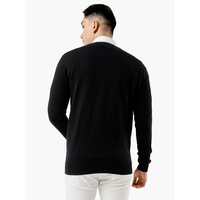 Gomuda Sweater Rajut Pria V-Neck Kerah V Lengan Panjang - Black, Xl