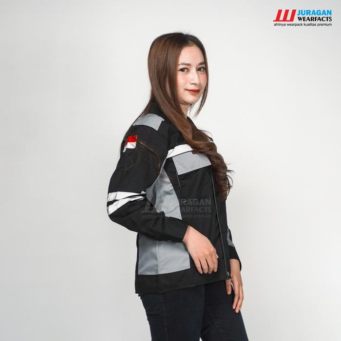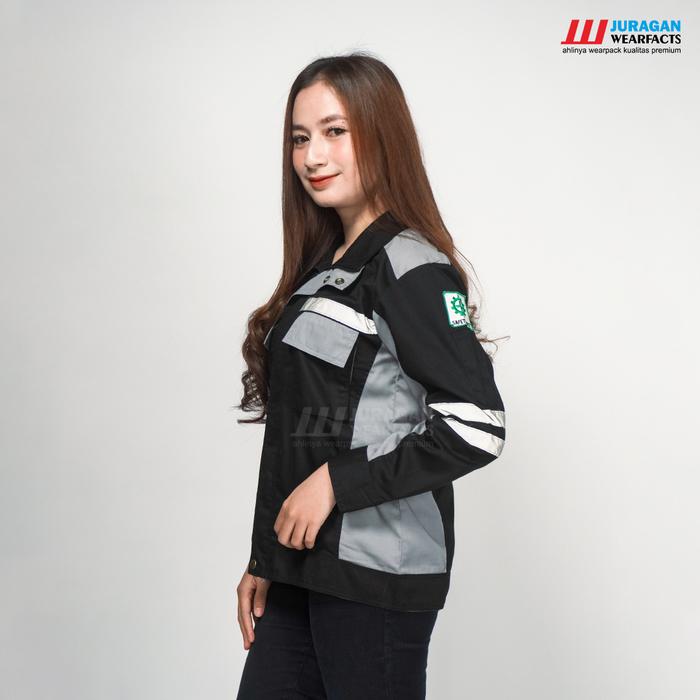 Wearpack Safety Baju / Seragam Kerja Lapangan Proyek Tambang K3 Panjang Pria Wanita Model Semijaket Hitam Kombinasi A