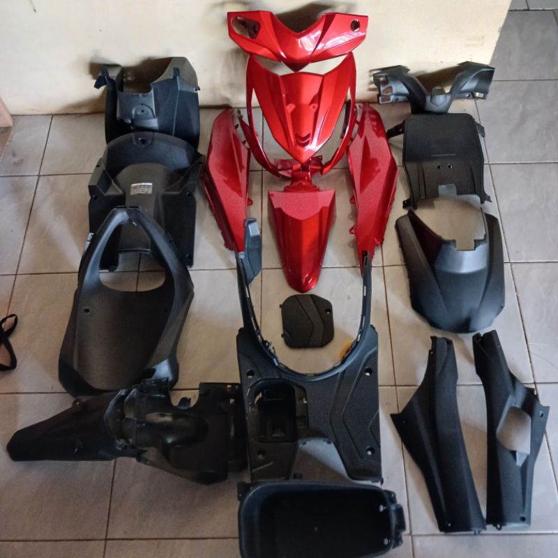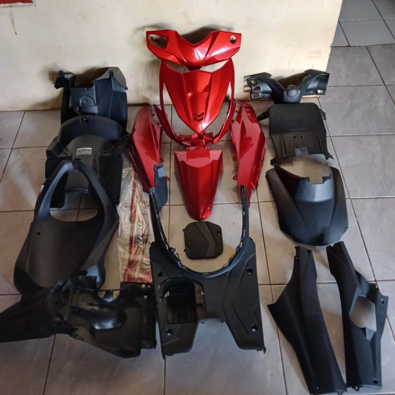 Cover full body halus kasar motor honda beat fi 2013-2014 stater kasar plus striping warna merah