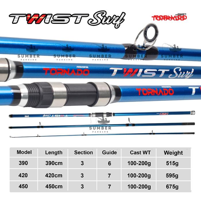 Tornado Joran Pancing Spinning Twist Surf 390Cm - 450Cm Carbon Joran Sambung 3 Cocok Untuk Surf Casting Dan Rock Fishing