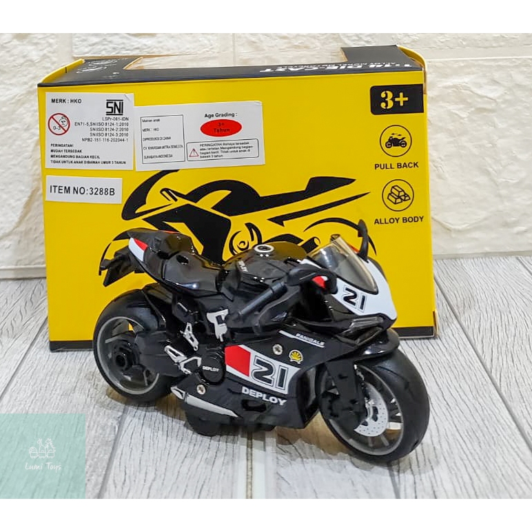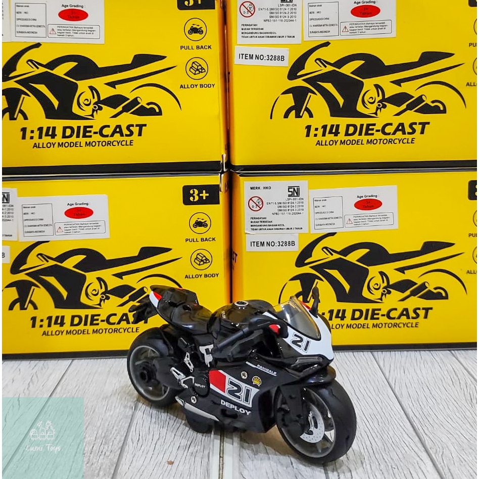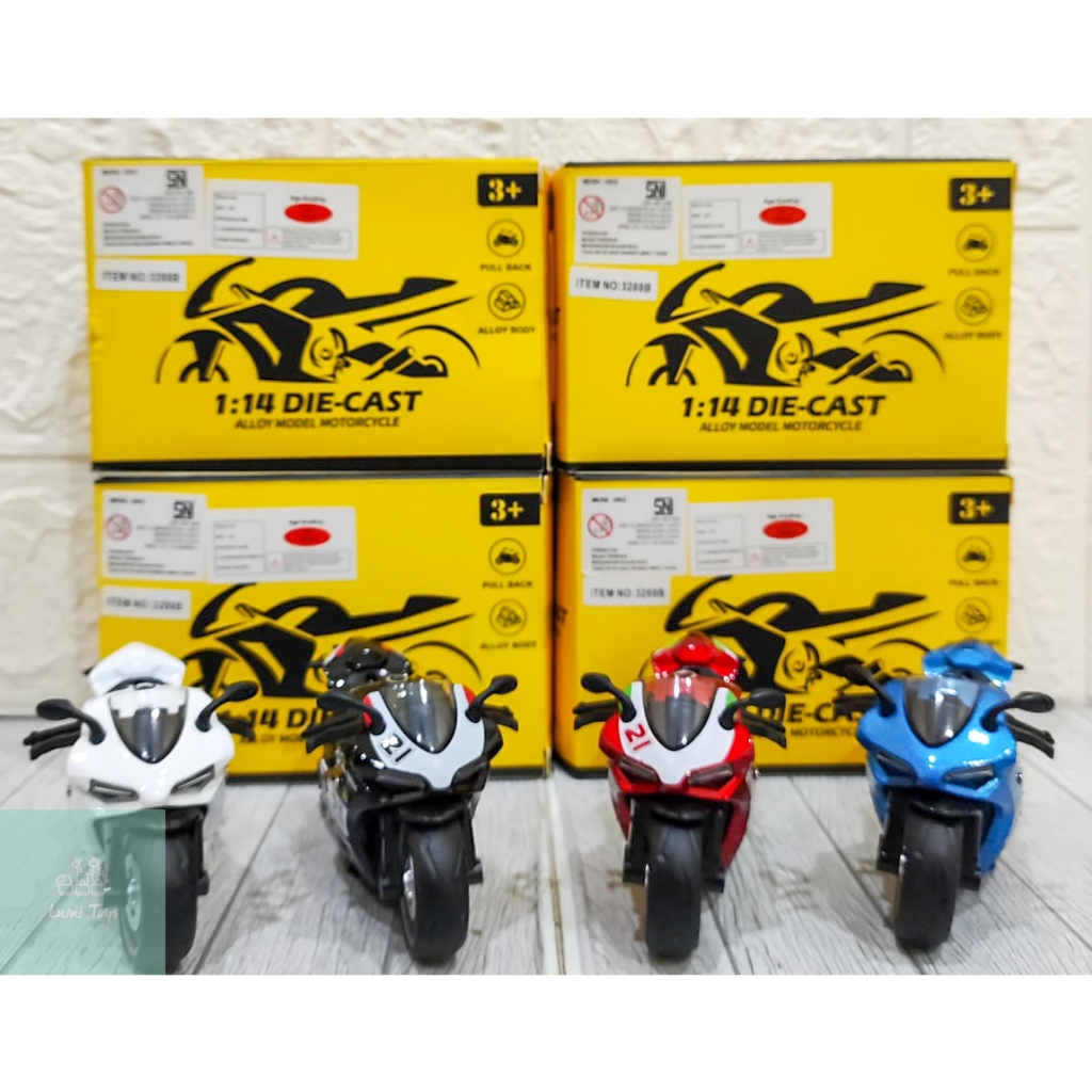 Mainan Anak Diecast Motorcycle Motor Balap Alloy 1:14 Pull Back 3288B