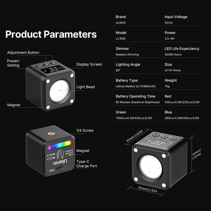 Ulanzi L2 Rgb Cob Video Led Light Lampu Magnetic Lighting Studio With 11 Effects For Hp Camera Vlog Youtuber / Live Tikt