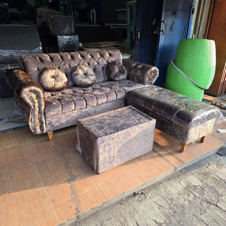 Sofa Ruang Tamu 3 Seater Beludru + Bench Minimalis Modern Terbaru