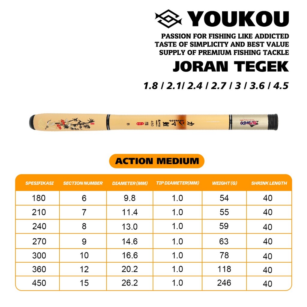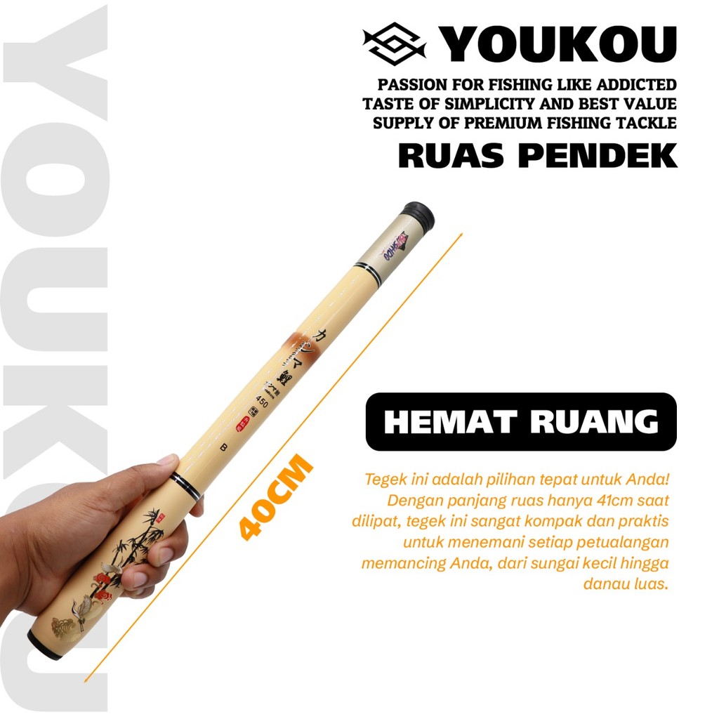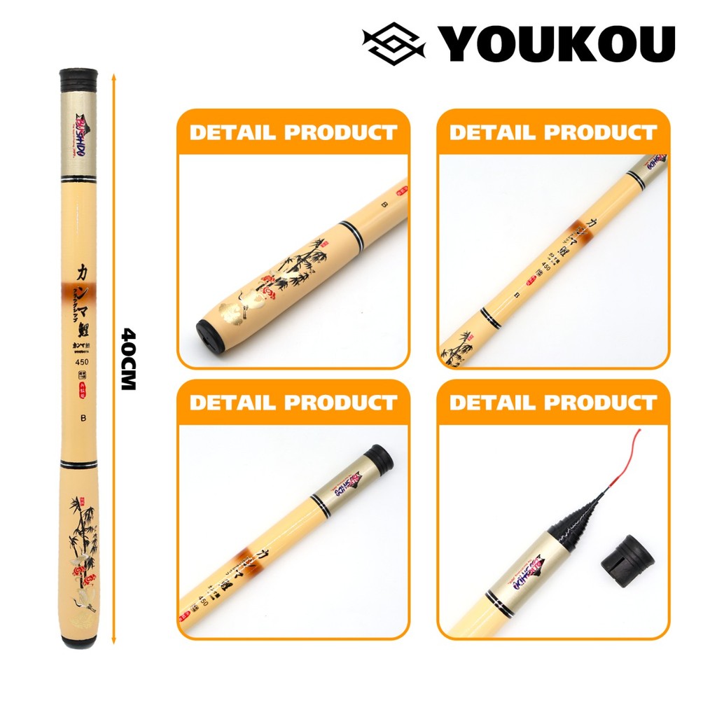 YOUKOU Joran pancing portabel ultra pendek Joran tangan/Panjang setelah kontraksi 40cm/ 1.8-4.5m Joran pancing karbon ul