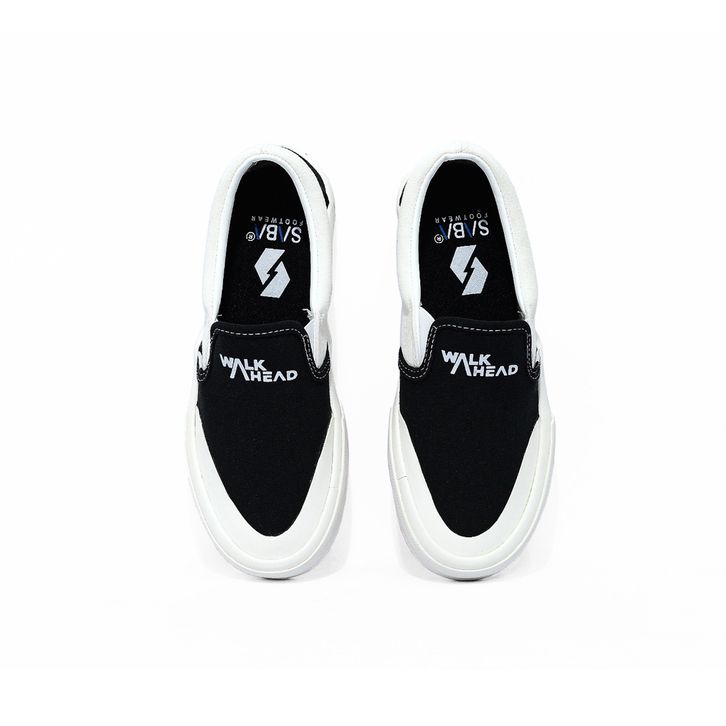 Slip On Half Black White - Sepatu Sneakers Casual Pria Wanita