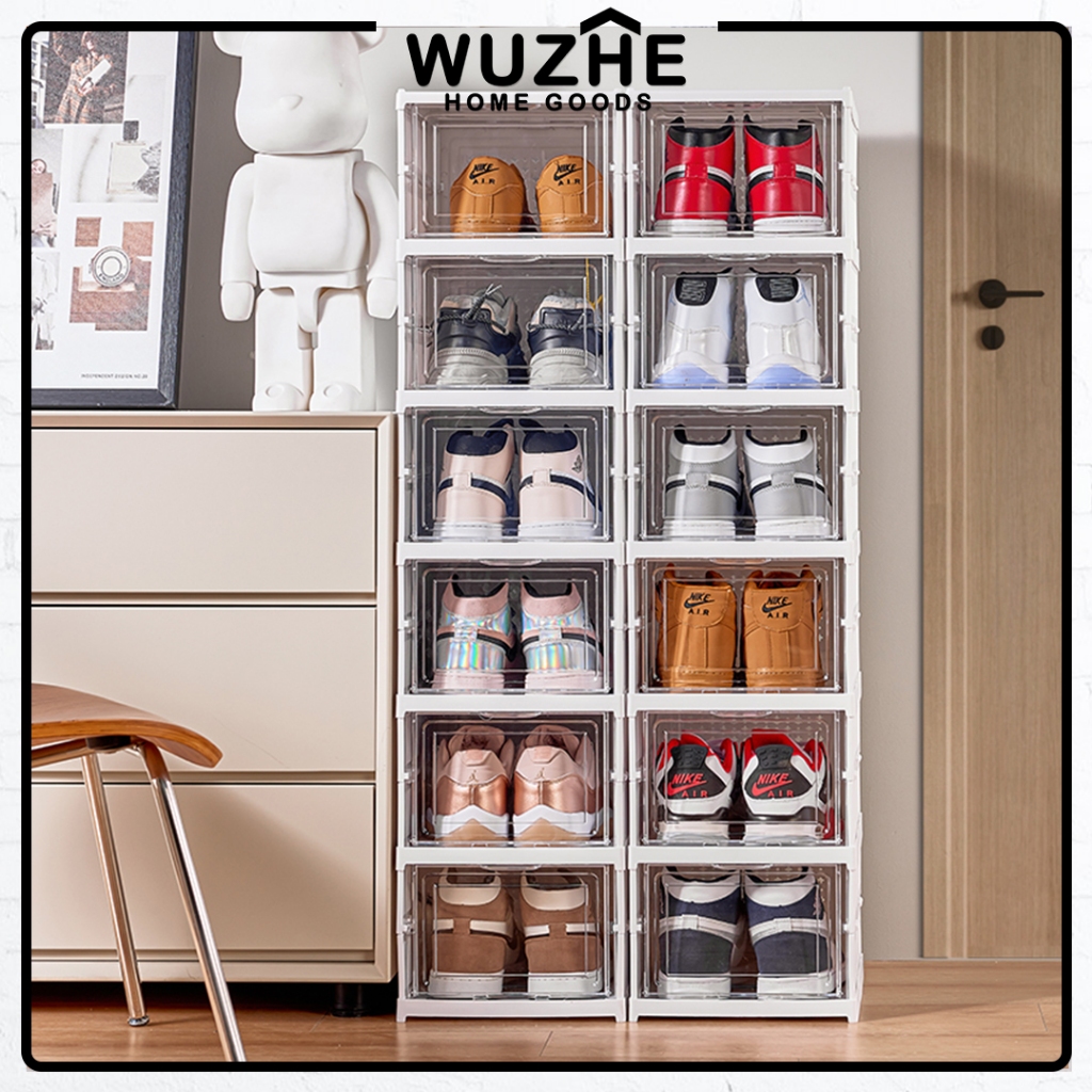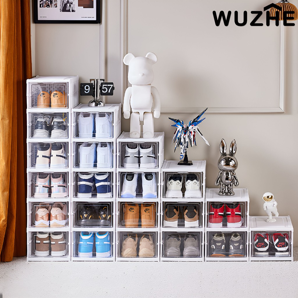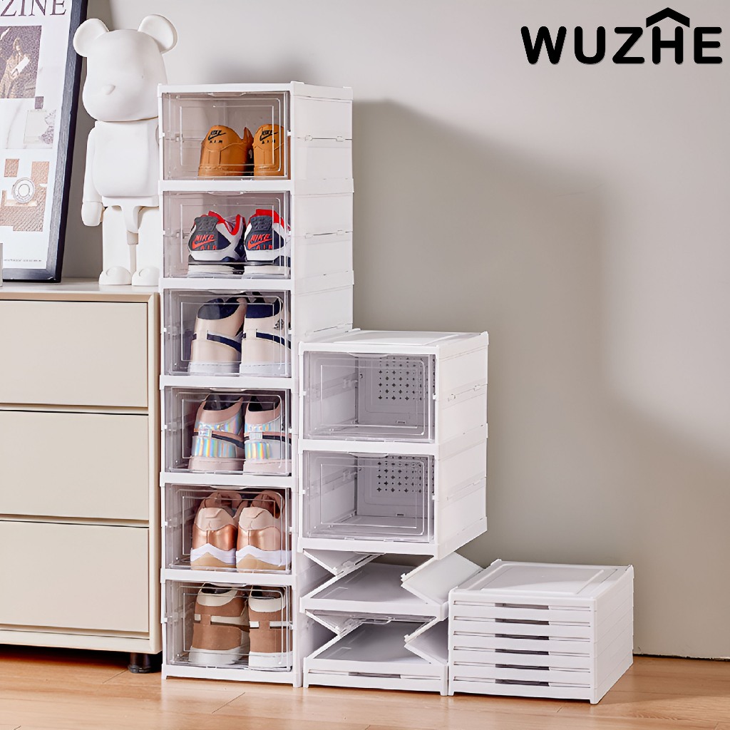 WUZHE Kotak Sepatu Lipat Rak Sepatu Lipat Lemari Sepatu Lipat Kotak Sepatu Transparan Plastik