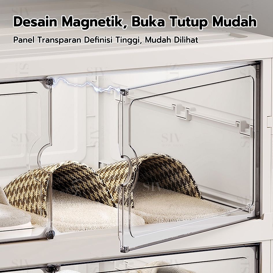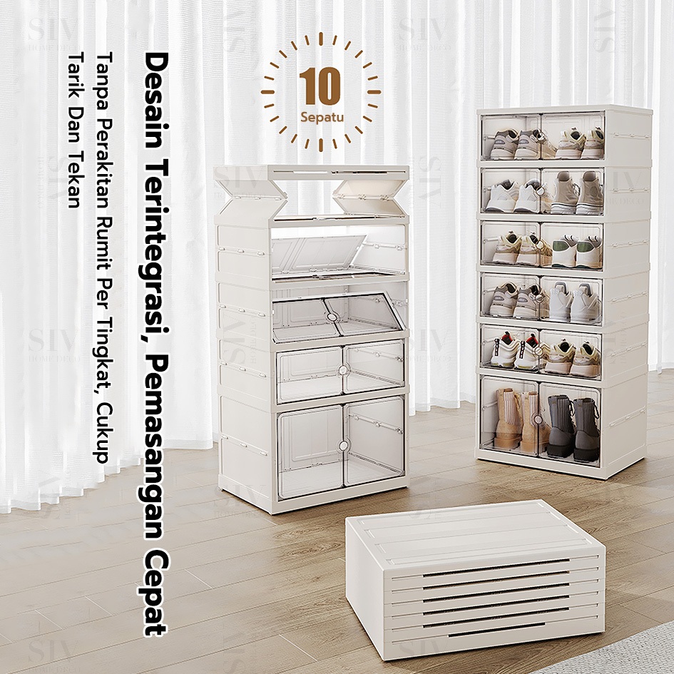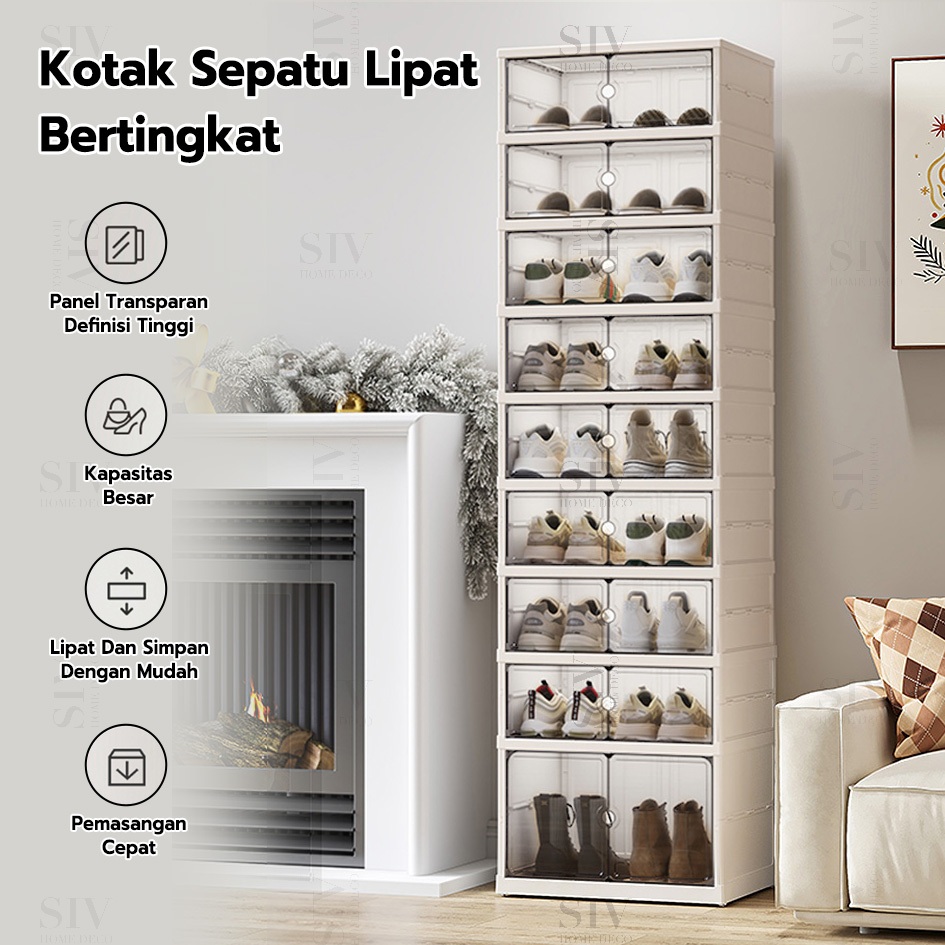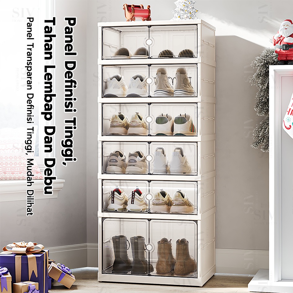 【Bebas Instalasi】SIV Rak Sepatu Lipat Susun Lemari Sepatu Plastik Tertutup Kotak Sepatu Transparan