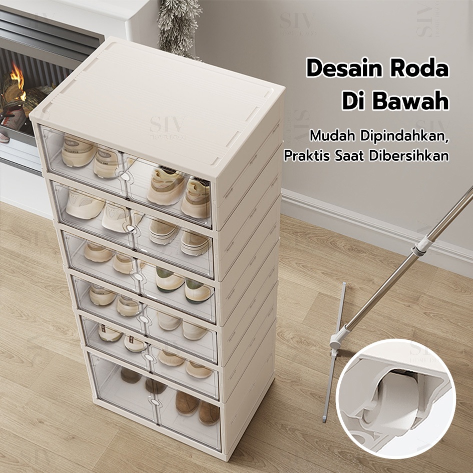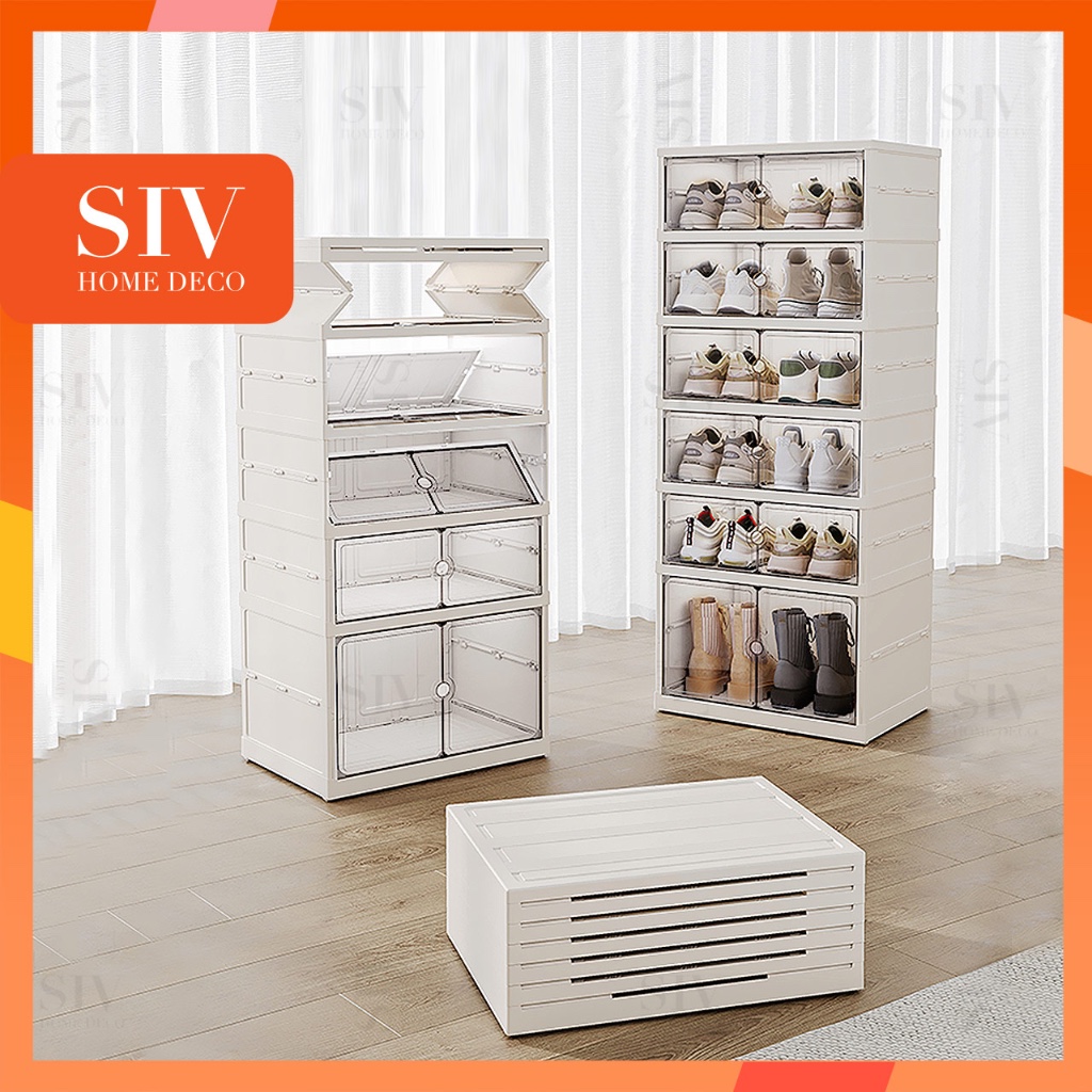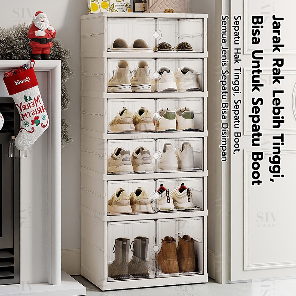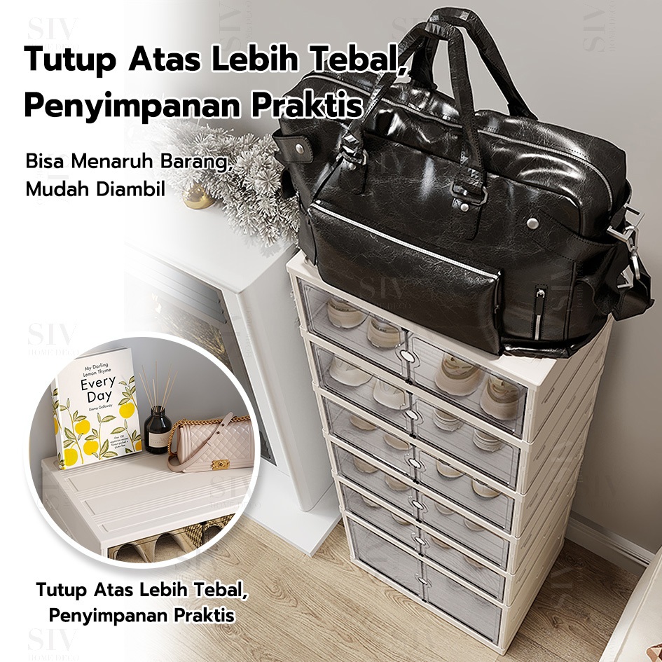 【Bebas Instalasi】SIV Rak Sepatu Lipat Susun Lemari Sepatu Plastik Tertutup Kotak Sepatu Transparan