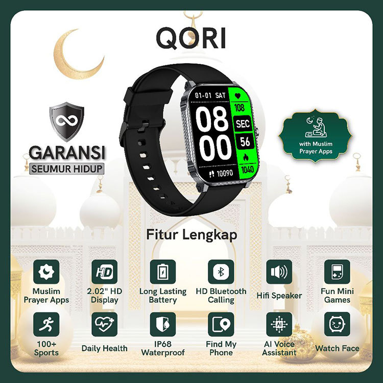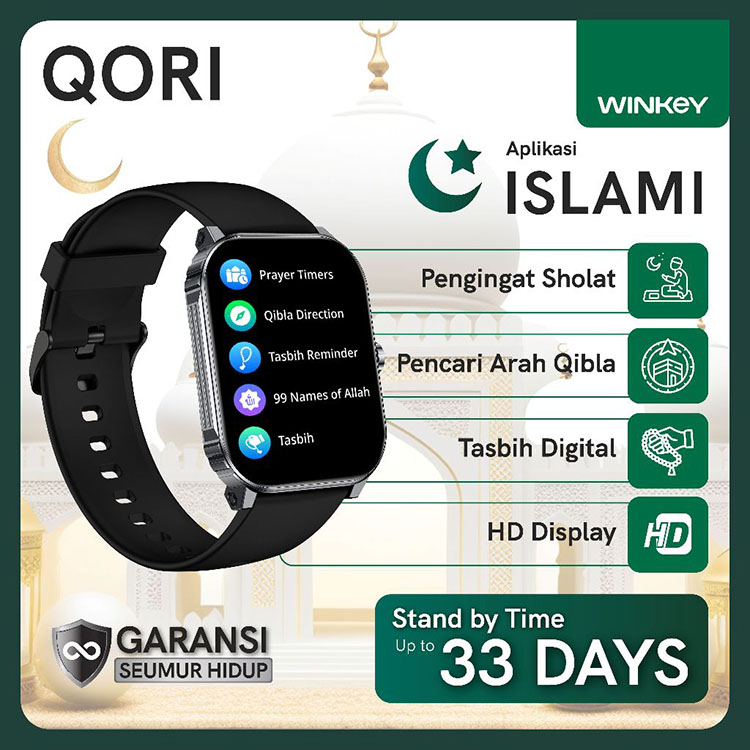 WINKEY Smartwatch Islami QORI Jam Tangan Pintar dengan Aplikasi Prayer Muslim Smartwatch Pria Wanita