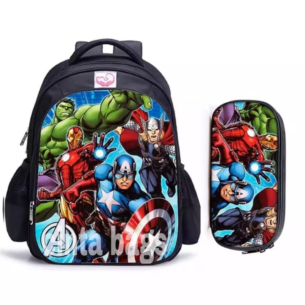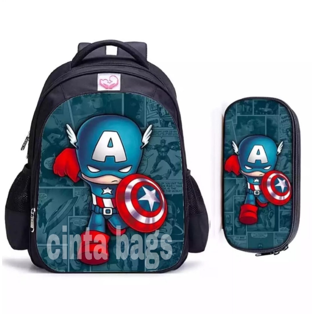 Tas Ransel Fashion Sekolah Anak Laki Laki PAUD TK SD Marvel Super Hero Kapten Amerika free fire Batmen