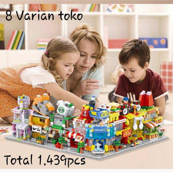 Mainan Anak Anak Edukasi Balok Susun Toko Modern Balok Street View 8 in 1 Murah Best Seller