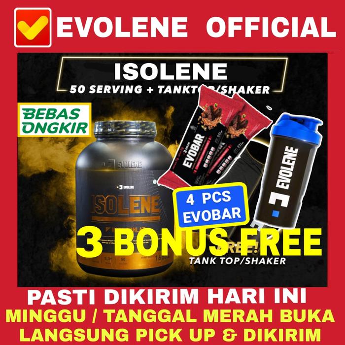 Evolene Isolene 50 Sachet Whey Protein Isolate Susu Gym - Coklat, + Shaker