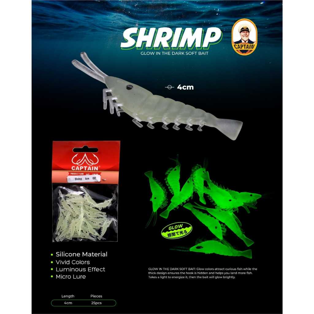 Umpan Pancing Captain Soft Lure Shrimp Udang GID 4 cm