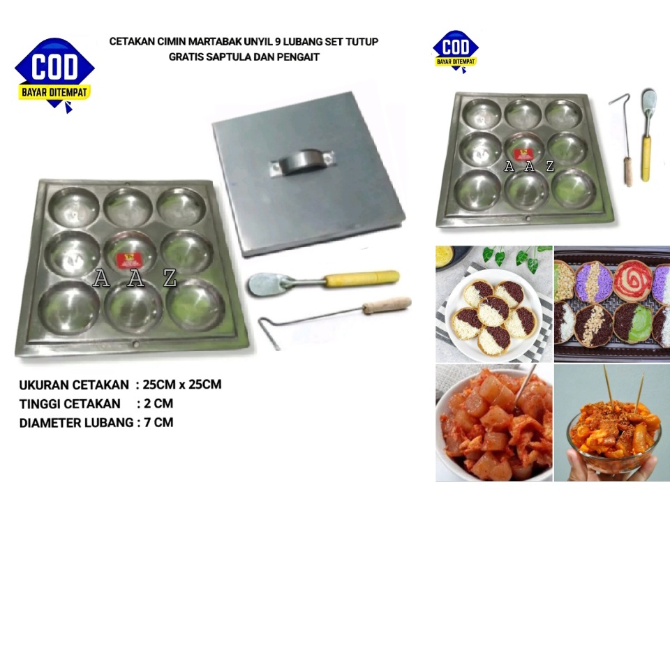 Cetakan cimin / cetakan kue loyang cimin 9 lubang set tutup gratis pengait dan spatula kue