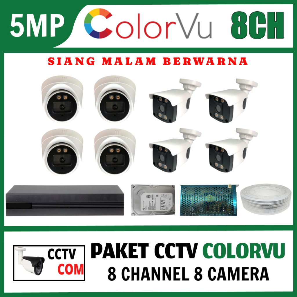 PAKET CCTV COLORVU -SIANG MALAM BERWARNA 8 CHANNEL 8 CAMERA 5MP IC SONY 1080P KOMPLIT TINGGAL PASANG