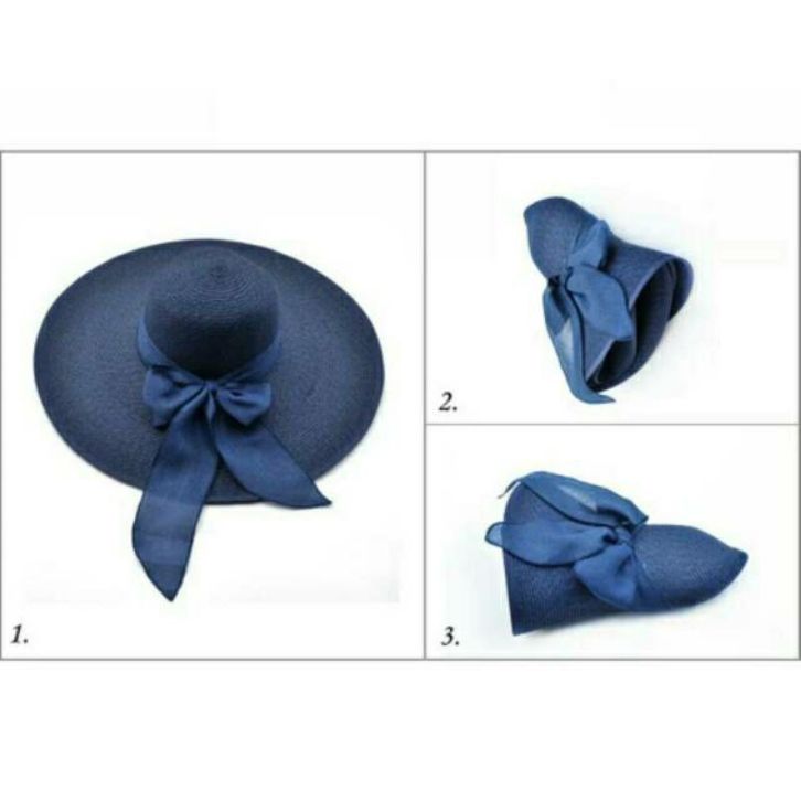 Topi pantai lebar list polos PL1 Topi pantai pita lebar Topi pantai wanita Summer hat