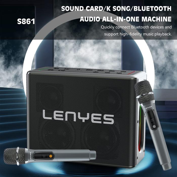 LENYES S861 150W KTV RGB LED Light Wireless Speaker + Microphone Karaoke Bluetooth 5.0 Portable High Power