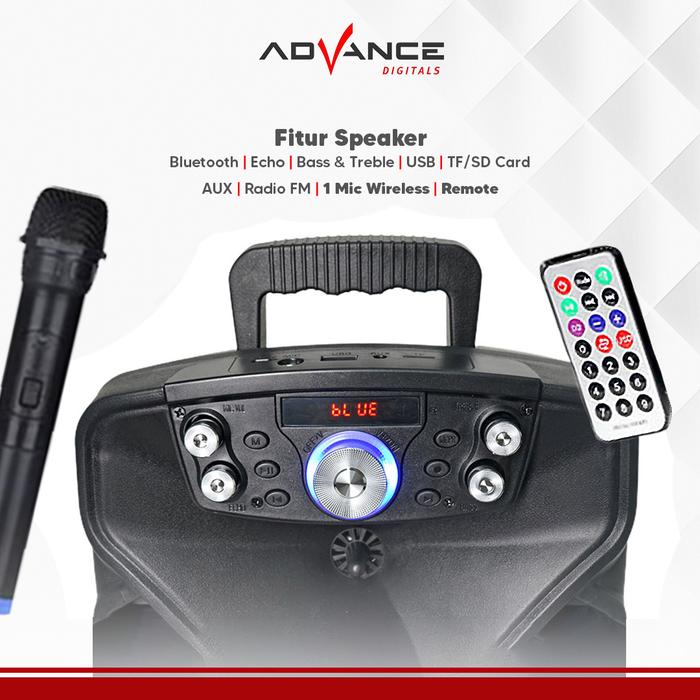 ADVANCE 8 inchs Wireless Bluebooth Speaker Portable 2400mah FM Radio Xtra Power Sound H801N Mic Speaker