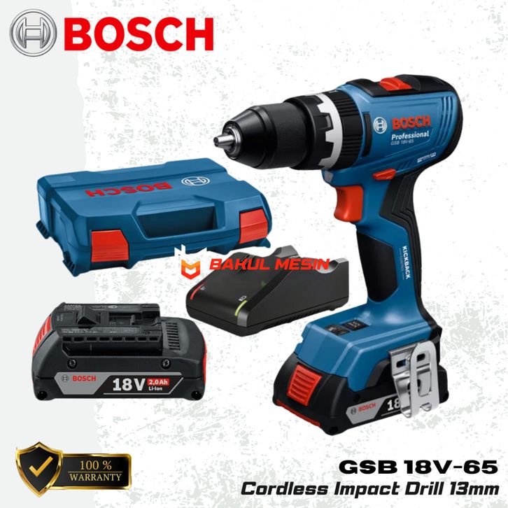 BOSCH GSB 18V-65 Mesin Bor Tembok Baterai Cordless Brushless Impact Drill 18V 13mm