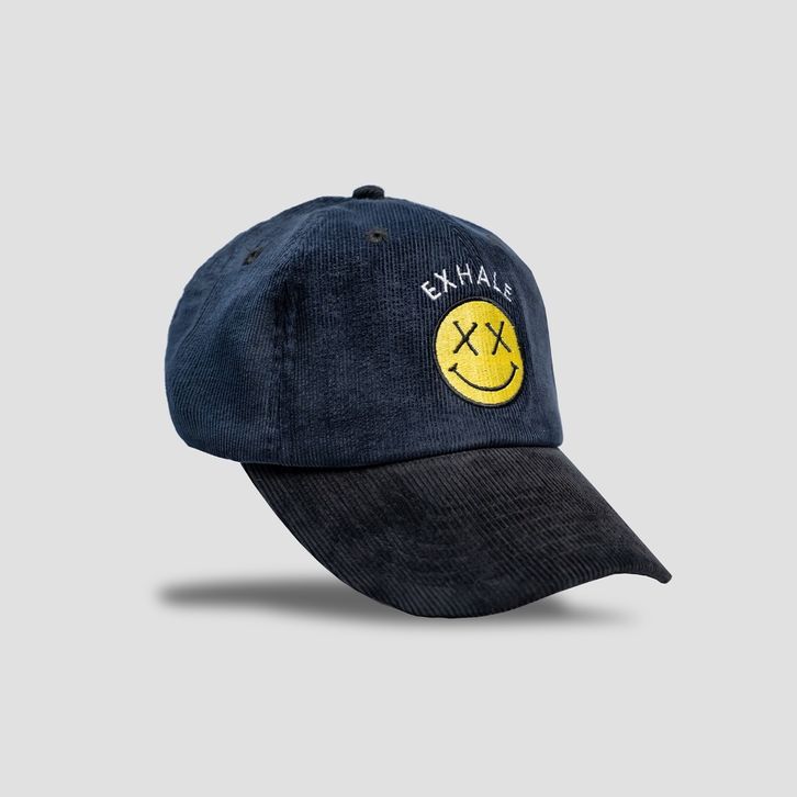 NEW Exhale Caps Topi Corduroy Smile X Black Navy icifd