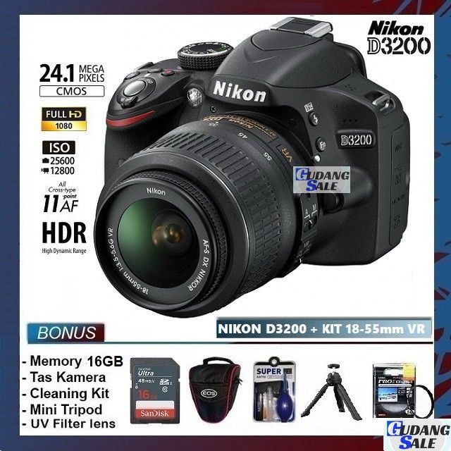 KAMERA NIKON D3200 + LENSA KIT 18-55VR - CAMERA DSLR 600D 1300D 700D