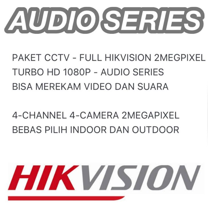 PAKET CCTV HIKVISION AUDIO SERIES 4 CHANNEL 4 CAMERA 2MP TURBO HD 1080P KOMPLIT TINGGAL PASANG