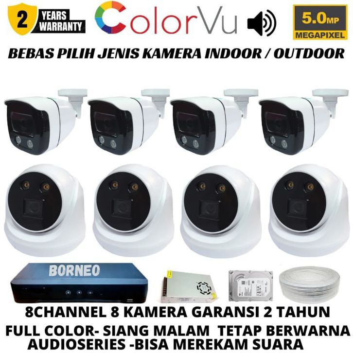 PAKET CCTV AUDIO COLORVU 5MP 8 CHANNEL 8 KAMERA COLORVU 1080P