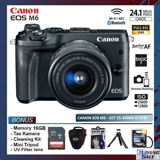 KAMERA CANON EOS M6 + LENSA KIT 15-45MM IS STM WiFi - MIRRORLESS m50 m100 m3