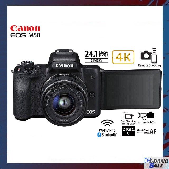 KAMERA CANON EOS M50 + LENSA KIT 15-45MM IS STM WiFi - MIRRORLESS m6 m3 m100