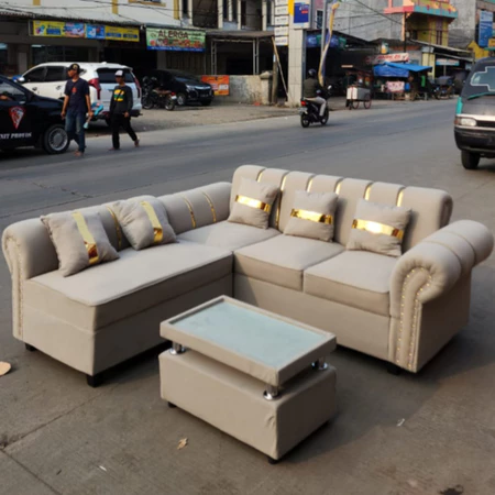 Sofa Ruang Tamu Sofa L Putus Kancing Bludru Sofa L Sudut Minimalis Mewah Murah Kursi Ruang Tamu