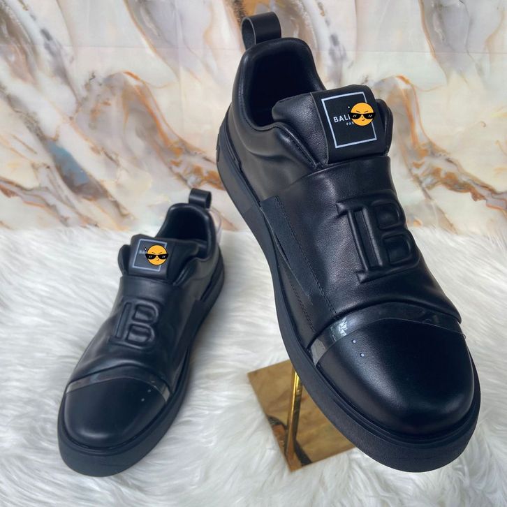 SBM3 SEPATU PRIA CASUAL TANPA TALI KULIT FULL BLACK