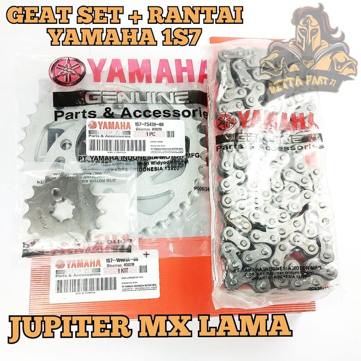 GEAR SET PLUS RANTAI YAMAHA 1S7 JUPITER MX LAMA KUALITAS ASLI ORIGINAL YAMAHA presisi kokoh tidak bunyi atau berisik aw