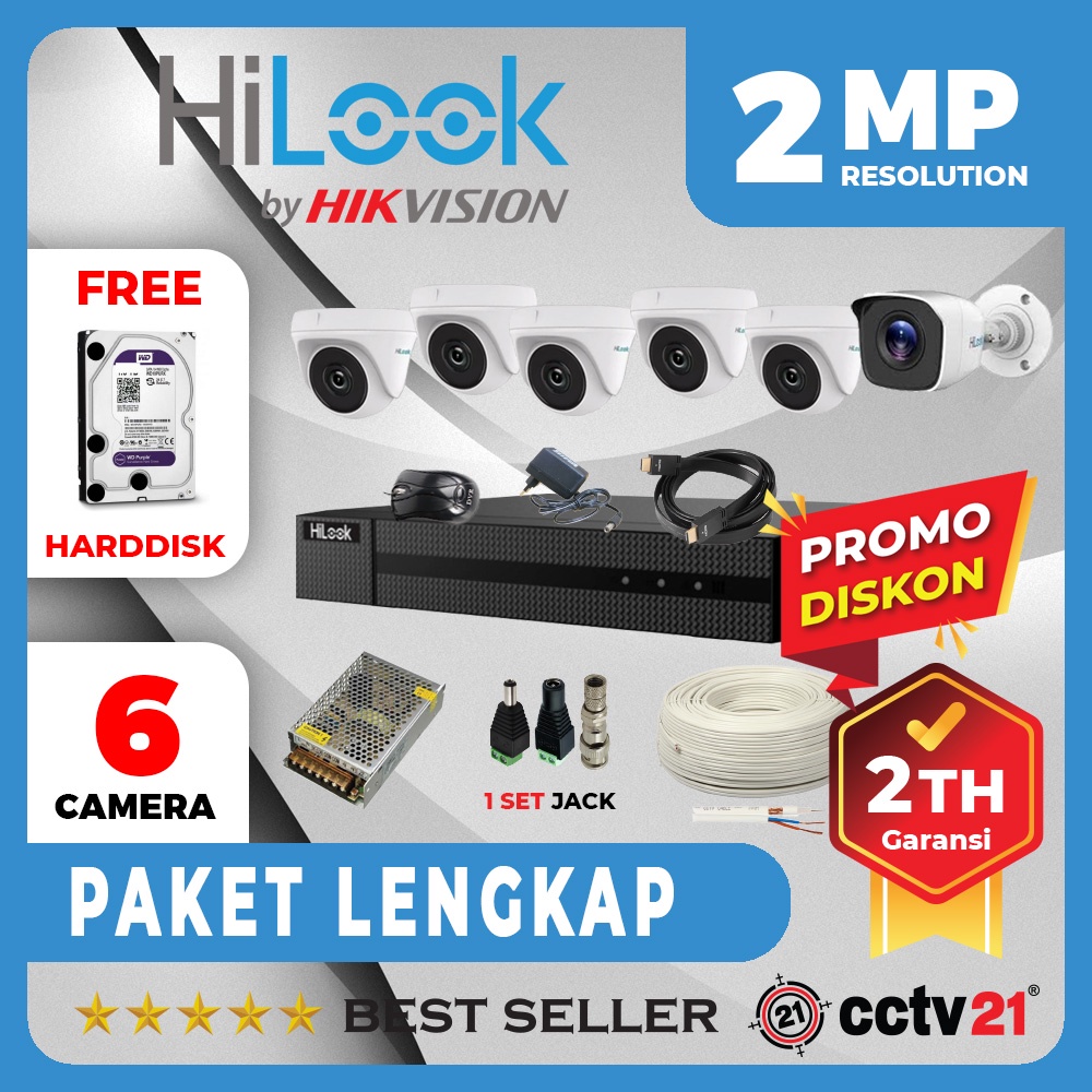 Paket Lengkap 6 cctv Camera HILOOK (by HikVision)+DVR 8ch Kabel +HDTV+LAN Harga Lagi Promo cctv21