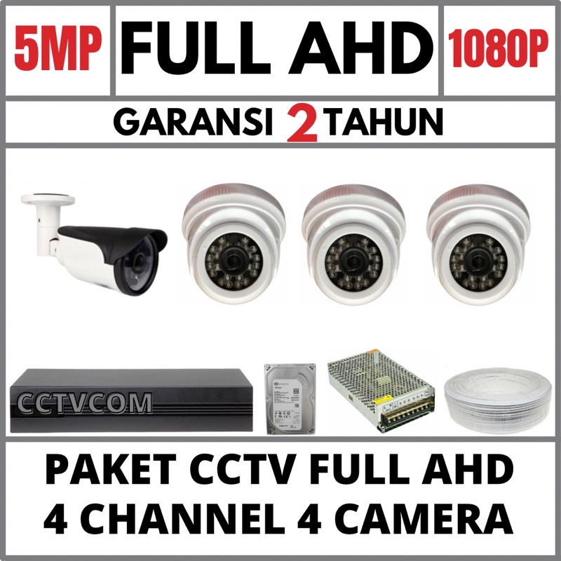 PAKET CCTV 4 CHANNEL 4 CAMERA FULL AHD 1080P IR SONY KOMPLIT TINGGAL PASANG