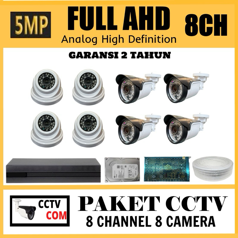 PAKET CCTV 8 CHANNEL 8 CAMERA FULL AHD 5MP 1080P IR SONY KOMPLIT TINGGAL PASANG