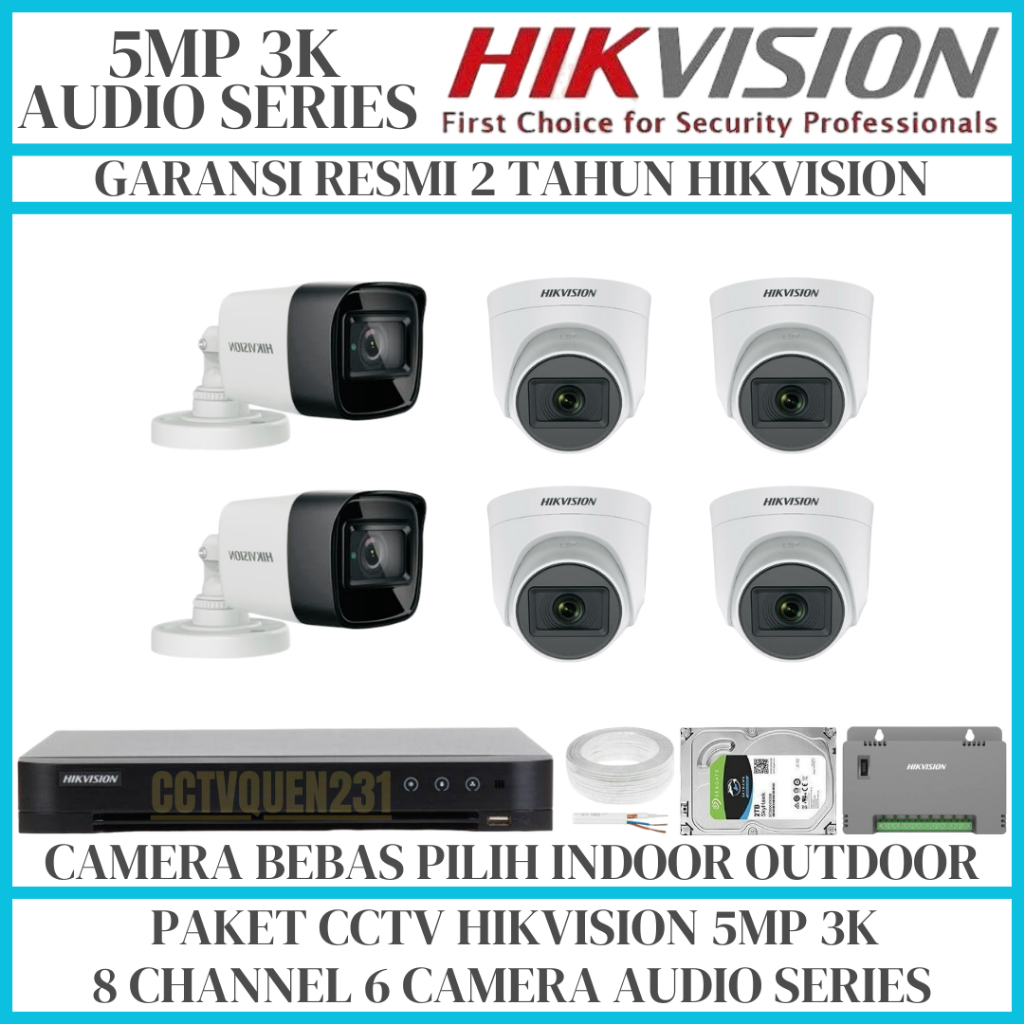 PAKET CCTV HIKVISION 5MP 8 CHANNEL 6 CAMERA 5MP TURBO HD TVI CAMERA CCTV KOMPLIT