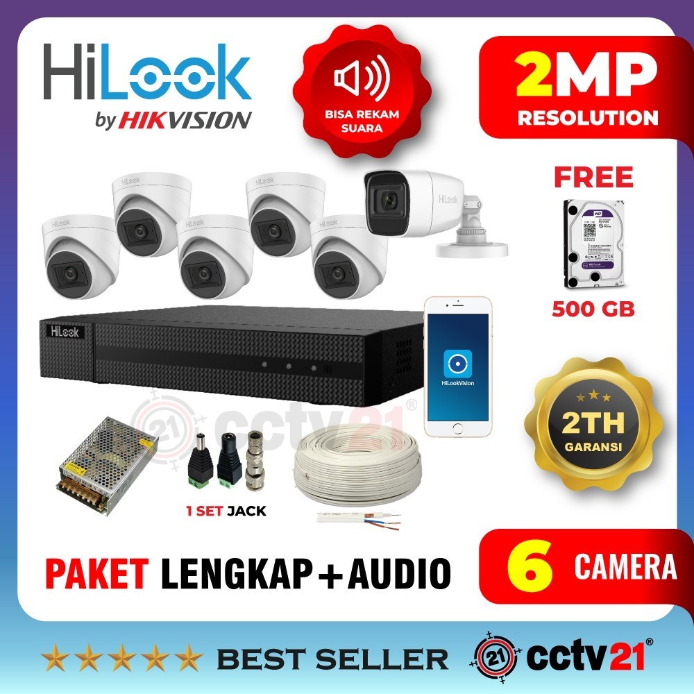 Paket 6 cctv Camera 2MP Audio HILOOK (by HikVision) THC-T120-PS +KB50M Harga Promo cctv21