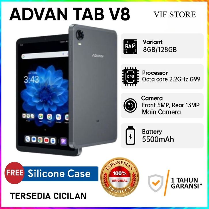 ADVAN Tab V8 Gaming Mediatek Helio G99 (8+8GB/128GB) IPS WUXGA FHD+ 1920*1200 Android 14 FREE CASE