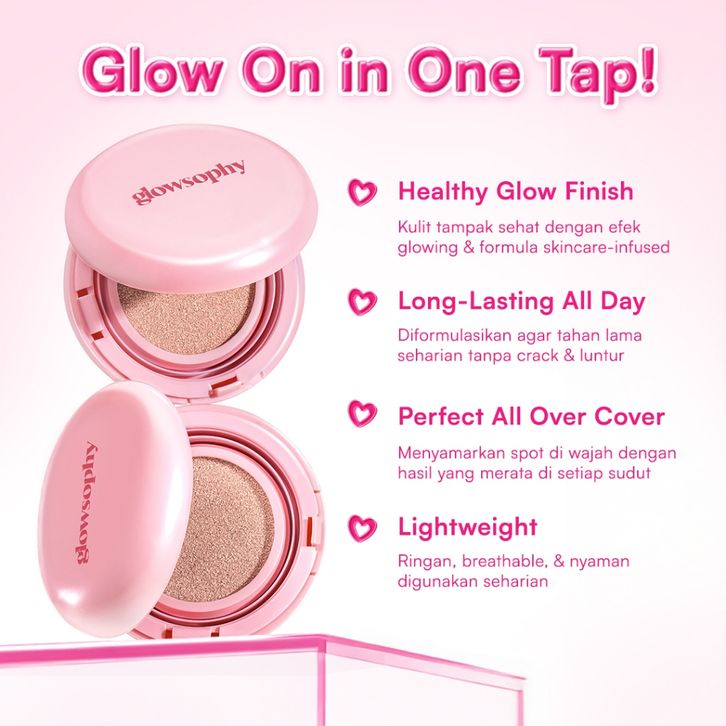 Glowsophy Bundle 2Pcs Cover Glow Serum Cushion Long Lasting All Day - Healthy Glow Finish Cushion Ringan dengan Medium