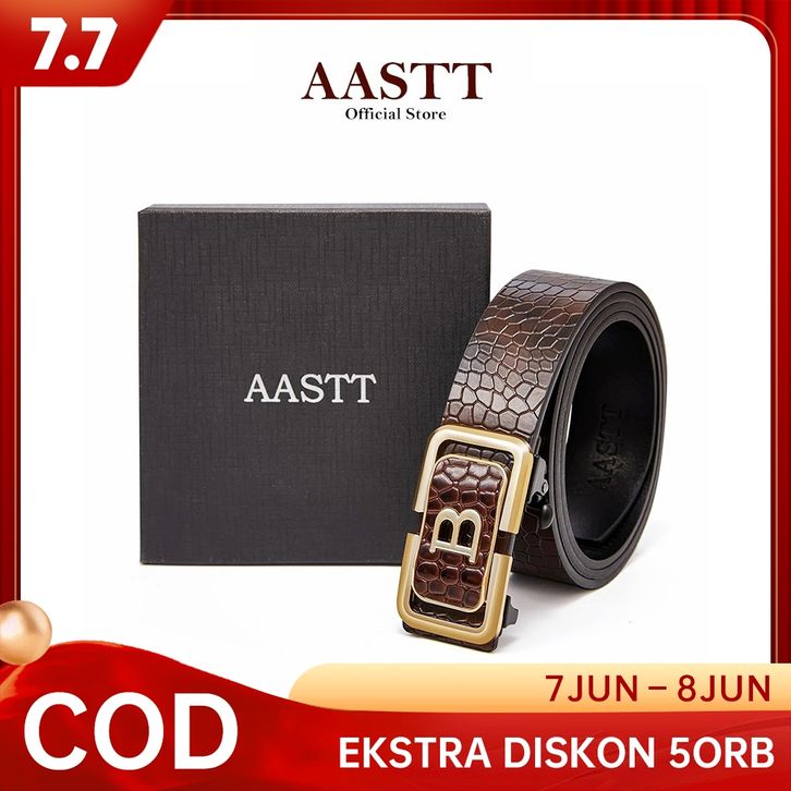 TERLARIS AASTT Sabuk Ikat pinggang Pria Sabuk Pinggang Gesper Otomatis Dapat Disesuaikan Paket kotak hadiah Warna