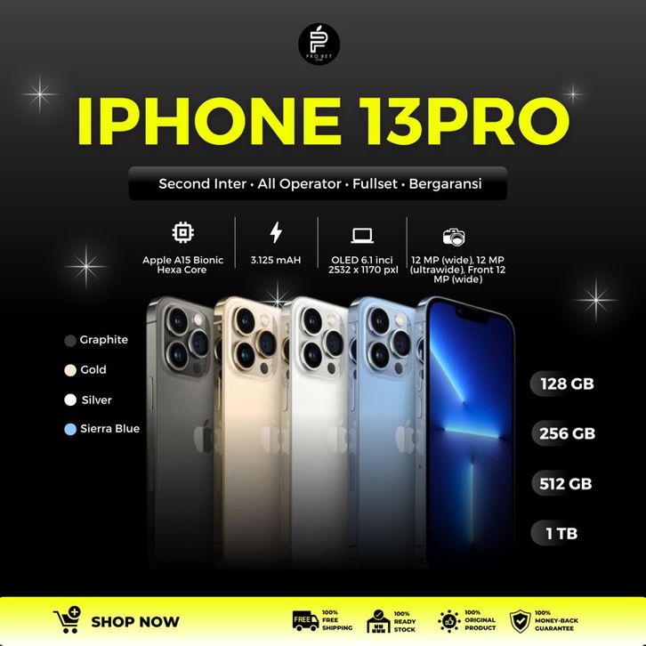 IPHONE SECOND 13 PRO 128GB / 256GB / 512GB FULLSET LIKE NEW