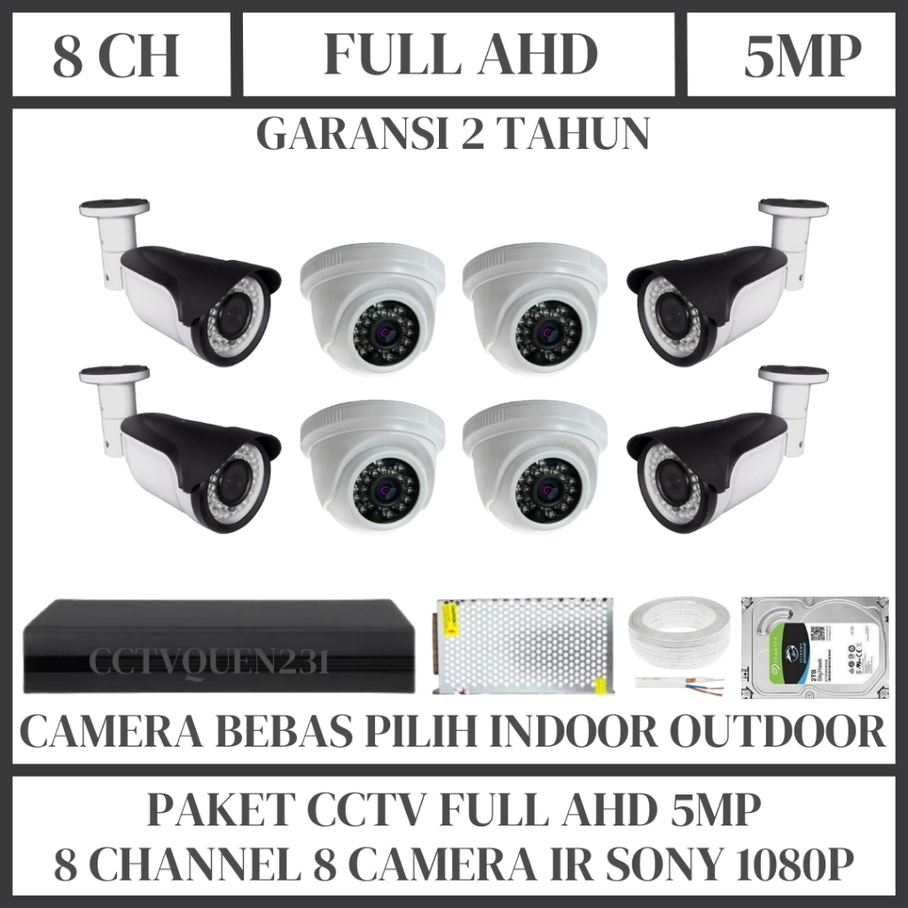 PAKET CCTV 8 CHANNEL 8 KAMERA FULL AHD 5 MP 1080PIR SONY KOMPLIT TINGGAL PASANG