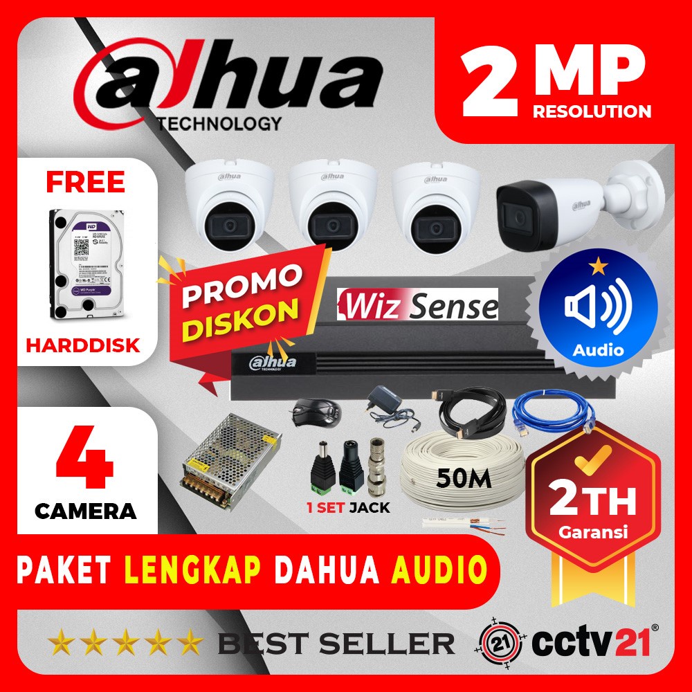 Paket 4 cctv Kamera Audio 2MP DAHUA Lengkap + Kabel 50M Harga Khusus Jual Lagi Promo cctv21