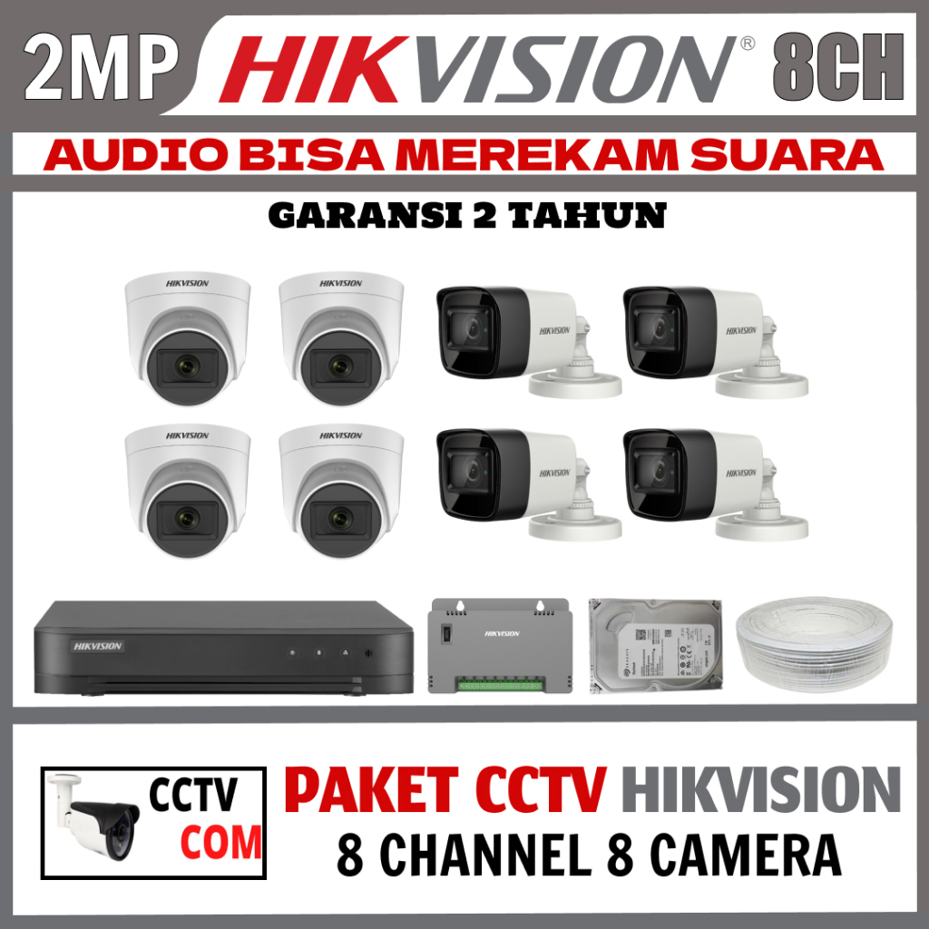 PAKET CCTV HIKVISION 2MP 8 CHANNEL 8 KAMERA 1080P TURBO HD/AUDIO KAMERA CCTV KOMPLIT TINGGAL PASANG