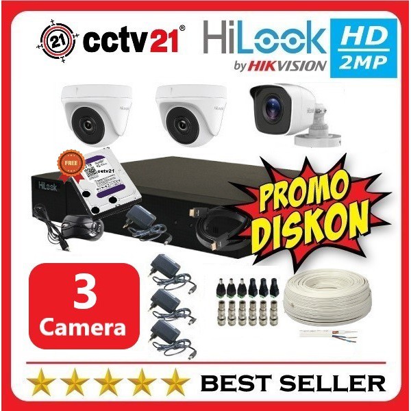 Paket CCTV HILOOK (By HikVision) 3CH / 3 Channel Kamera Full HD 2MP Komplit Lengkap