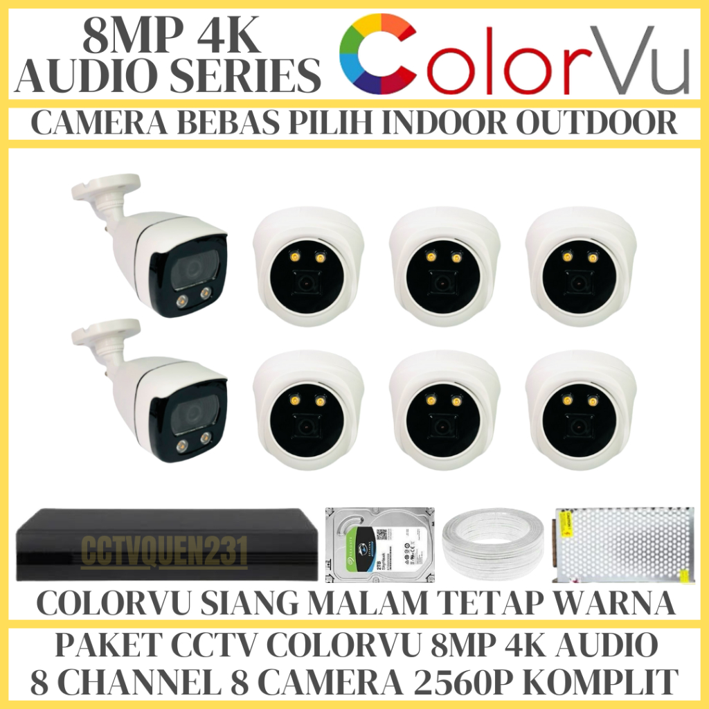PAKET CCTV COLORVU 8MP 8 CHANNEL 8 KAMERA ULTRA HD 4K CAMERA AUDIO SERIES