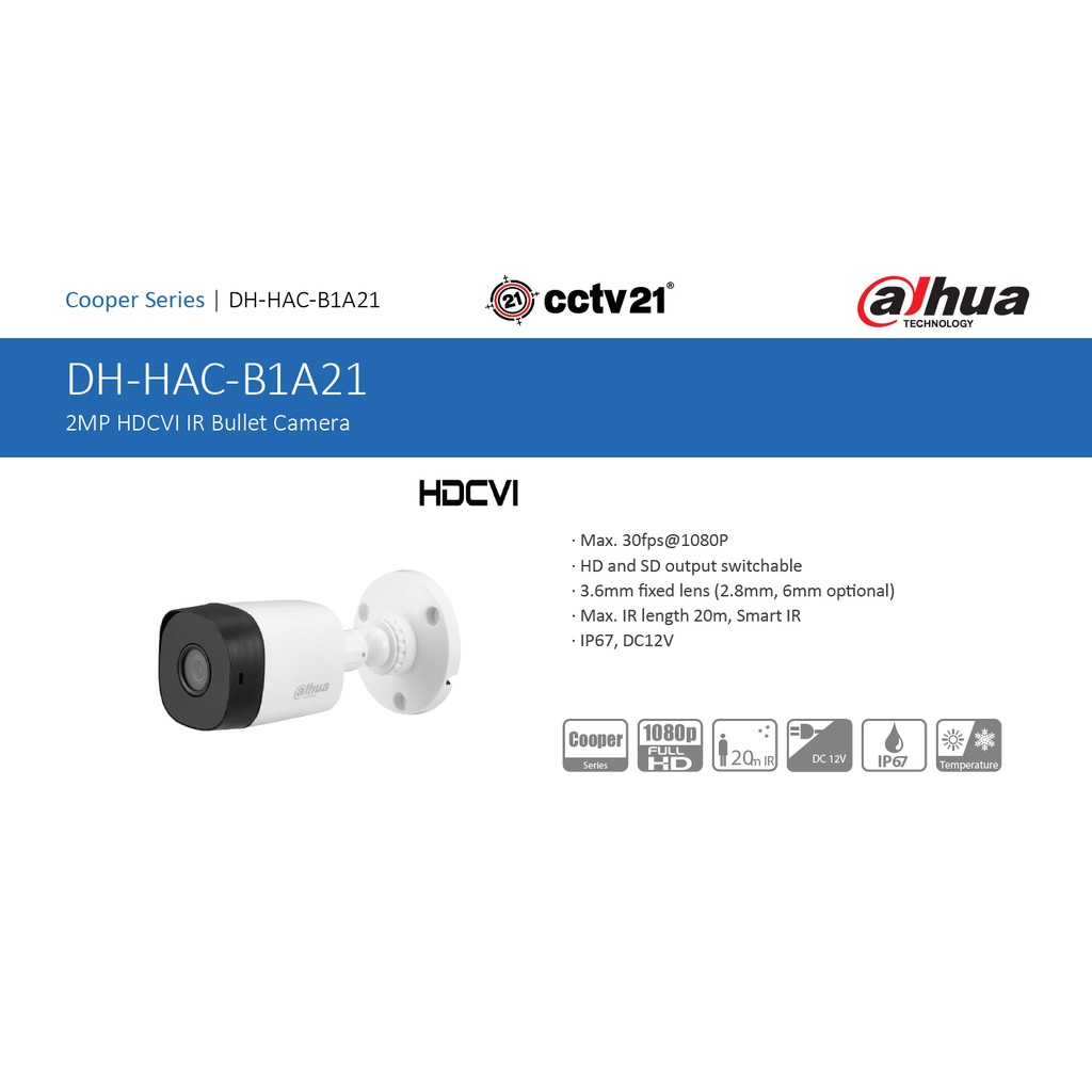 Paket CCTV / Camera DAHUA 2 Channel Kamera Full HD 2MP Kabel 30M Harga Promo cctv21